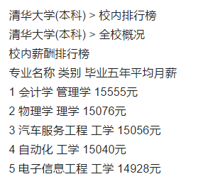 那清华毕业生的收入水平怎么样呢?下图是top5专业的毕业五年平均月薪。