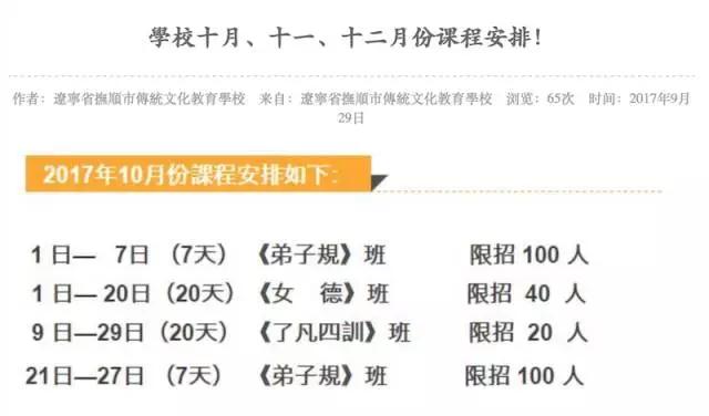 9月29日,网站发出一则名为“11月1日《女德》班開始報名了!”的通知,招生内容是这样的: