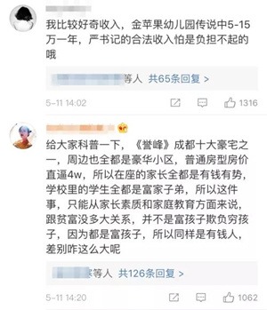 评论区还有网友爆料,金苹果幼儿园学费、周边房价都是“贵族”水平。