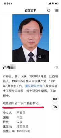 @成都网友小张 搜出了“严书记”的履历。