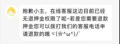 据那些耐心爆棚最终和在线客服沟通上的幸运儿们说,原先在线客服还能退押金,现在在线客服也不管退押金的事儿了……