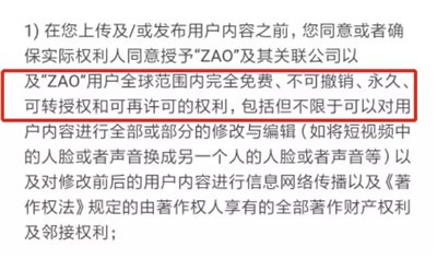 按照用户协议,如果你上传了一张吴亦凡的照片,那么这张照片同样也是授权ZAO及其关联公司免费使用的。