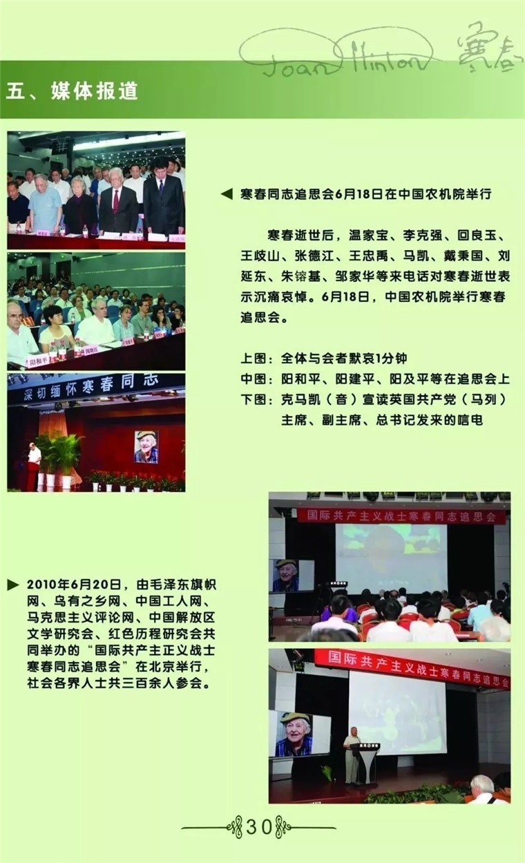 2010年6月8日,伟大的国际共产主义战士寒春,走完她丰富多彩的一生。