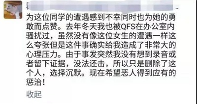 @懒惰的大灰狼 说,“我明确表示,上大学那会,我就被这个老师性骚扰过,跟别人说,大家还说我想多了”。