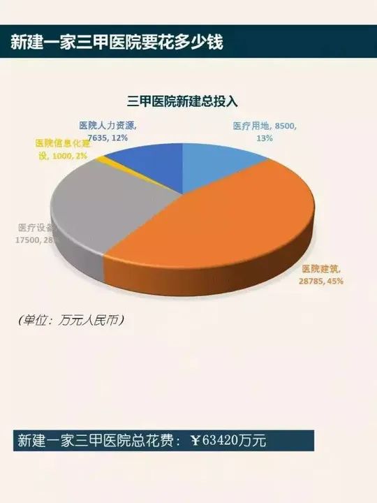 我们再来算一笔账,根据《三级甲等综合医院评审标准》、《综合医院建设标准》等公开资料,从项目管理与财务管理的角度来核算,新建一家500张病床位的小型三甲医院需要约六亿元,我们豪气一点,算十亿吧,1.7万亿除个10,也就是1700。我们再看2019到2020年医院增加数量,注意这些不都是三甲医院哦,35394—34354=1040。也就是说,我们拿三年花了1.7万亿来算,怎么着也能多整点三甲医院出来,结果有点不如人意嗷。